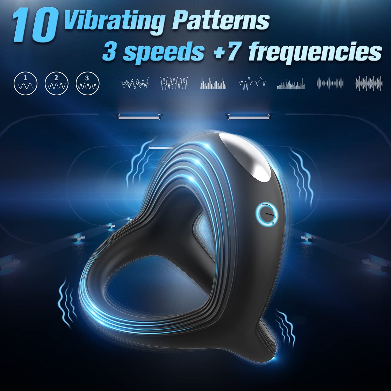 - 【3 Speeds + 7 Vibration Modes】This penis ring vibrator has a total of 10 frequency patterns, starting with three different speeds, then you will enter seven different vibration modes.