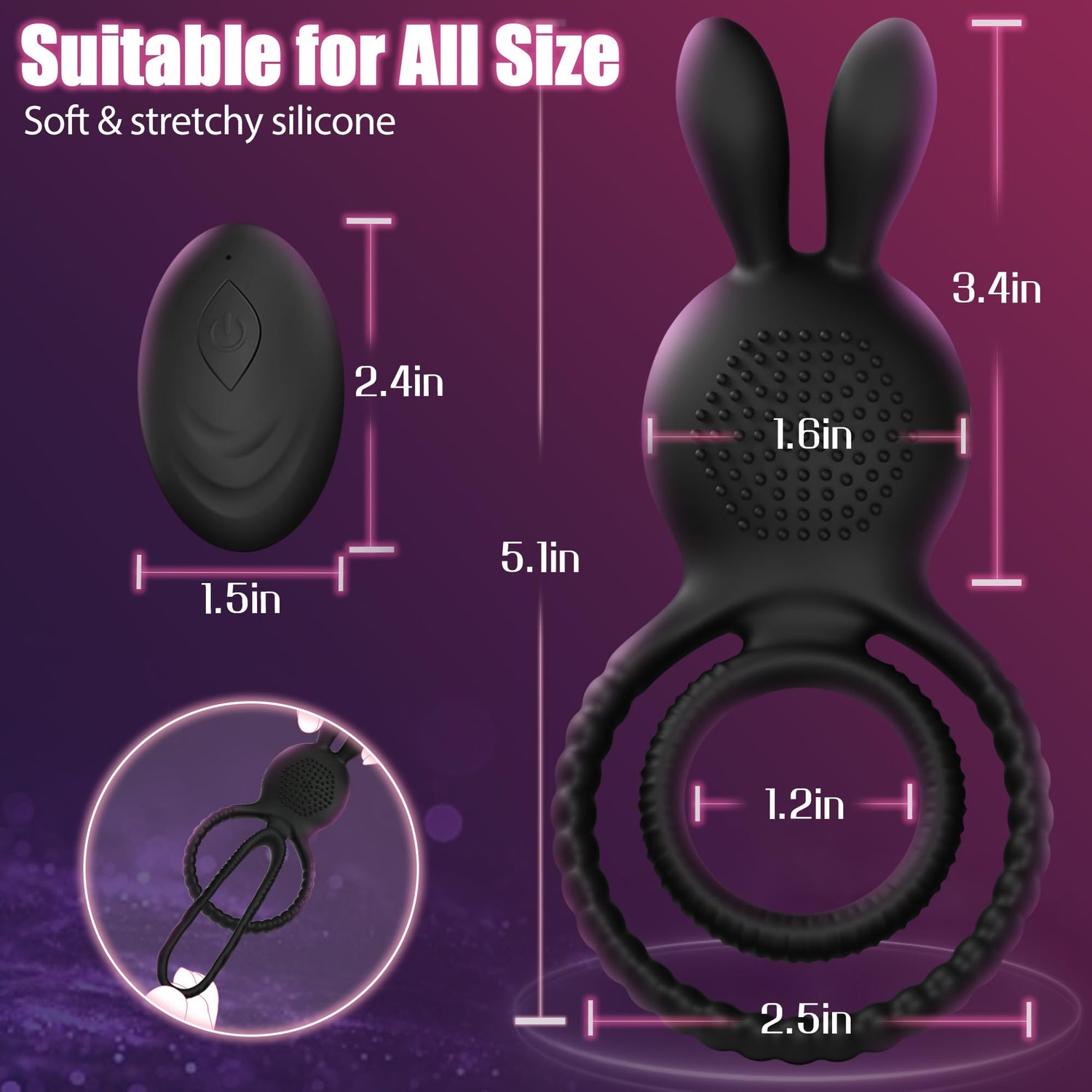 - 4-in-1 Multipurpose Pleasure:Discover ultimate satisfaction with our 4in1 Penis Ring Vibrator. This premium male sex toy features double rings, 10 powerful vibrations, dual vibrating bunny ears, and a remote control for a comprehensive experience.