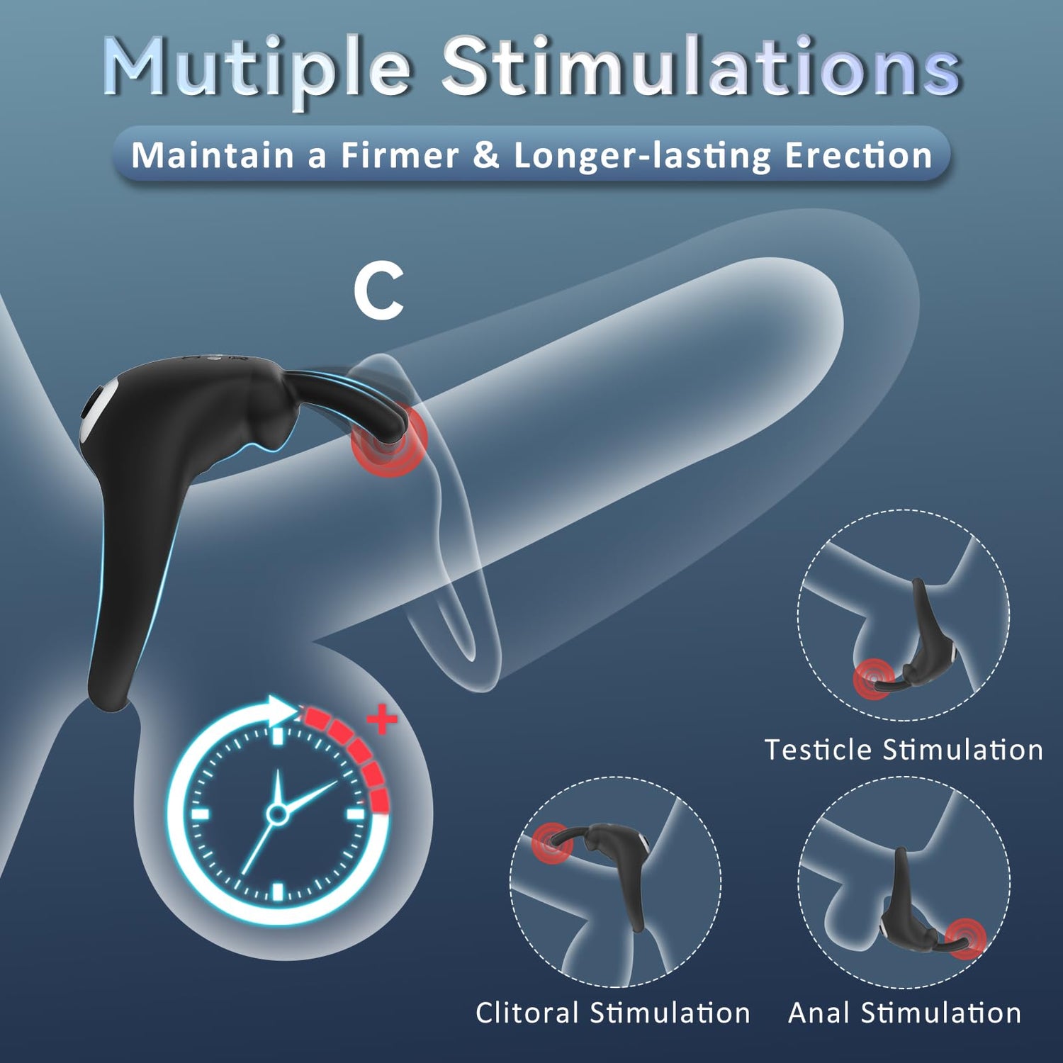 Multiple vibration modes: Powered by a strong motor, this cock ring offers 10 different vibrations.