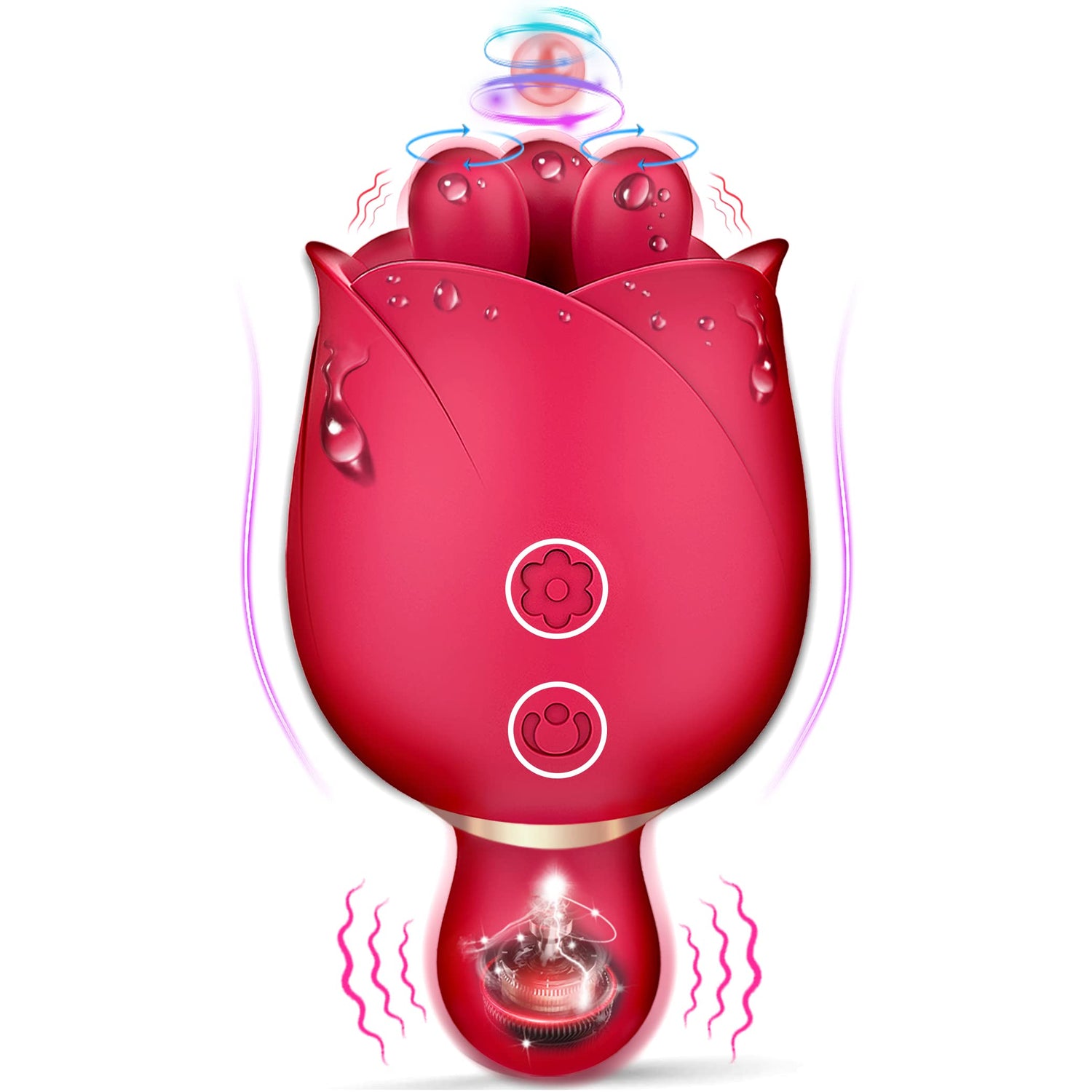 2 in 1 Rose Sex Toy for Women Clit Tongue Licking Rose Vibrator